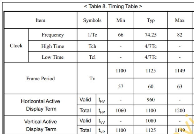 1.按照Timing Table配置 TOTAL,DCLK值: